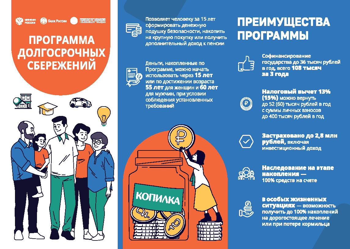 Подробнее с условиями программы можно познакомиться на сайте Мои финансы: https://xn--80apaohbc3aw9e.xn--p1ai/programma-dolgosrochnyh-sberezhenij-new/